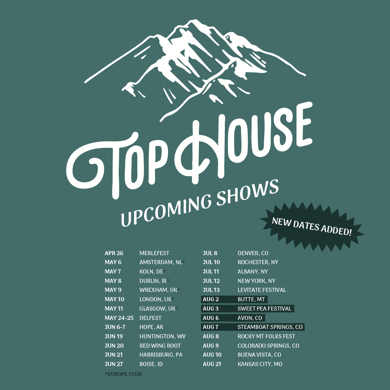 Merch • Media • Branding TopHouse Summer Tour 2025 TopHouse Summer Tour 2025I partnered with Nashville based band TopHouse to design tour posters, merch, and social announcements for their summer tour.
